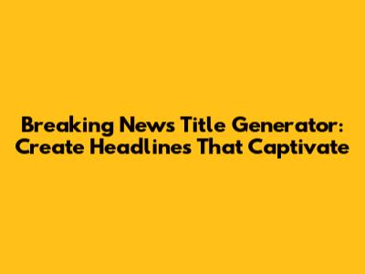 Breaking News Title Generator: Create Headlines That Captivate