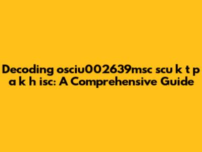 Decoding: Osciu002639msc Scu K T P A K H Isc - A Comprehensive Guide