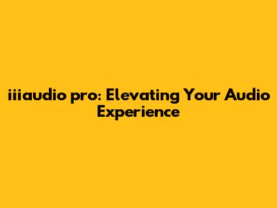 Iiiaudio Pro: Elevating Your Audio Experience