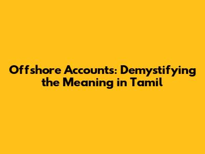 Offshore Accounts: Understanding The Meaning In Tamil