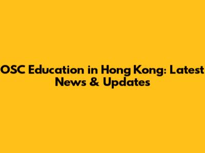 OSC Education In Hong Kong: Latest News & Updates