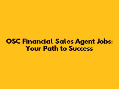 OSC Financial Sales Agent Jobs: Your Path To Success