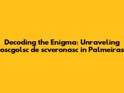 Palmeiras: Decoding The Mystery Of Oscgolsc De Scveronasc