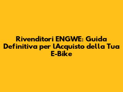 Ciao amici appassionati di e-bike! Siete alla ricerca di un rivenditore ENGWE per acquistare la vostra prossima bicicletta elettrica? Ottima scelta! ENGWE è un marchio che sta conquistando il mercato grazie all'ottimo rapporto qualità -prezzo delle sue e-bike, ideali sia per la città che per avventure off-road. In questa guida completa, vi accompagnerò nel mondo dei rivenditori ENGWE, svelandovi tutto ciò che c'è da sapere per trovare la e-bike perfetta per le vostre esigenze e, soprattutto, dove acquistarla in modo sicuro e conveniente. Preparatevi a pedalare verso la libertà ! Prima di tuffarci a capofitto nella ricerca dei rivenditori, è fondamentale capire perché ENGWE è diventata una scelta così popolare. Le e-bike ENGWE offrono un mix irresistibile di prestazioni, design accattivante e, come dicevamo, un prezzo competitivo. Che siate ciclisti urbani, amanti dell'avventura o semplicemente alla ricerca di un modo ecologico per spostarvi, ENGWE ha la bici giusta per voi. I modelli spaziano dalle e-bike pieghevoli, perfette per chi ha poco spazio o utilizza i mezzi pubblici, alle mountain bike elettriche, robuste e potenti per affrontare qualsiasi terreno. E non dimentichiamo le e-bike fat bike, con le loro gomme larghe che vi faranno sentire invincibili su sabbia, neve e sentieri accidentati. Con una vasta gamma di modelli e configurazioni, ENGWE soddisfa le esigenze di ogni tipo di ciclista. Ma dove trovare questi gioielli su due ruote? Continuate a leggere per scoprire i migliori rivenditori ENGWE e tutti i consigli utili per un acquisto senza sorprese.